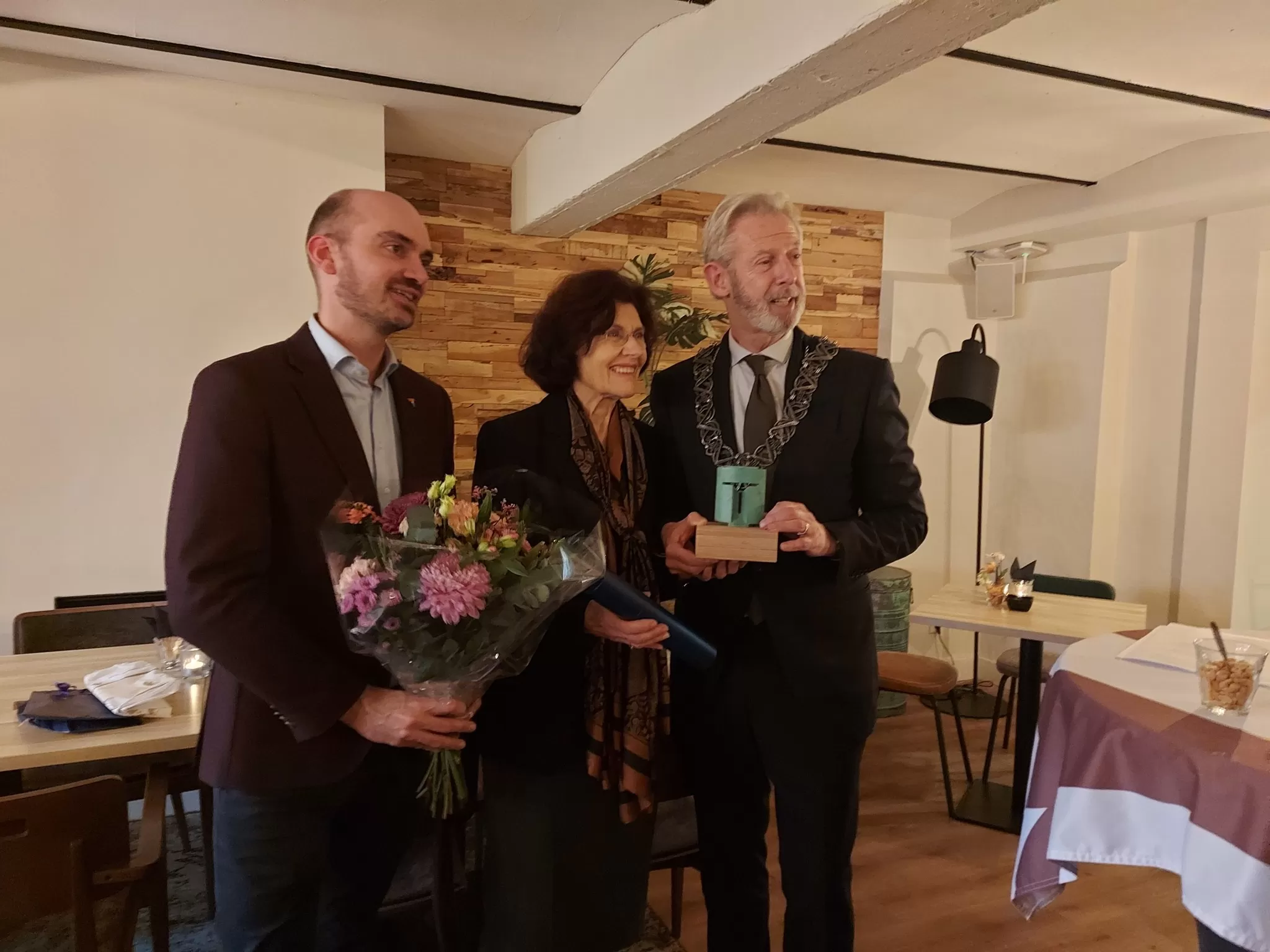 Afscheid Tineke Donga als voorzitter van de Dorpsraad. Na 2 maal 4 jaar was haar aftreden statutair verplicht. Ad Interim burgemeester Onno Hoes kwam samen met wethouder Maarten van Asten om haar te huldigen. Ze ontving een mooi beeldje met de T van Tilburg er in en een oorkonde. Van haar collega dorpsraadsleden ontving ze ook een cadeau. Ze wordt opgevolgd door Kees Miedema. Beste Tineke, heel erg bedankt voor al je kennis en inzet!